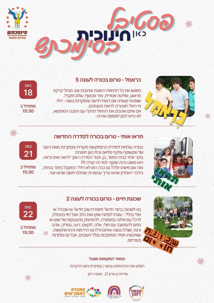 פסטיבל כאן חינוכית בסינמכתש בחופשת חנוכה