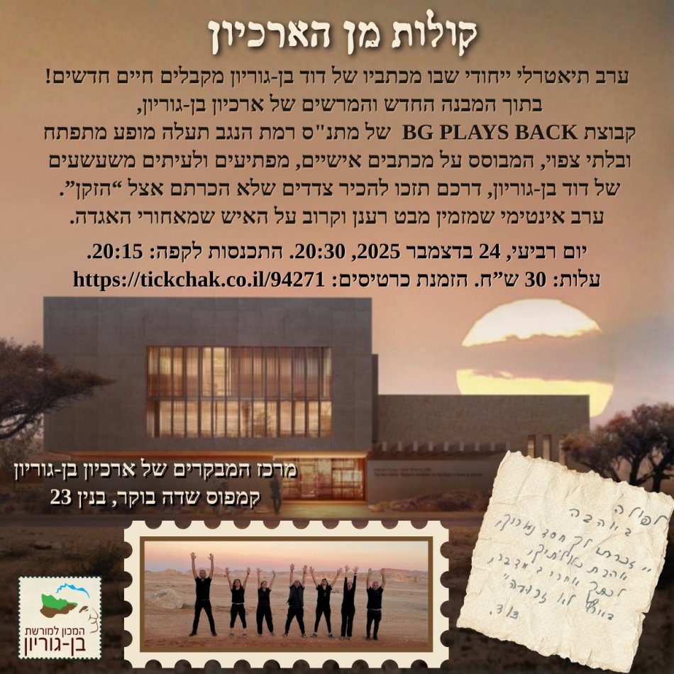 מוזמנים לערב תיאטרלי שבו מכתביו של דוד בן־גוריון מקבלים חיים חדשים 24/12/25