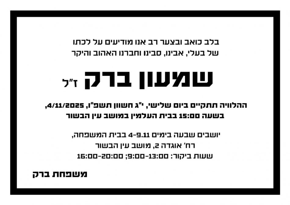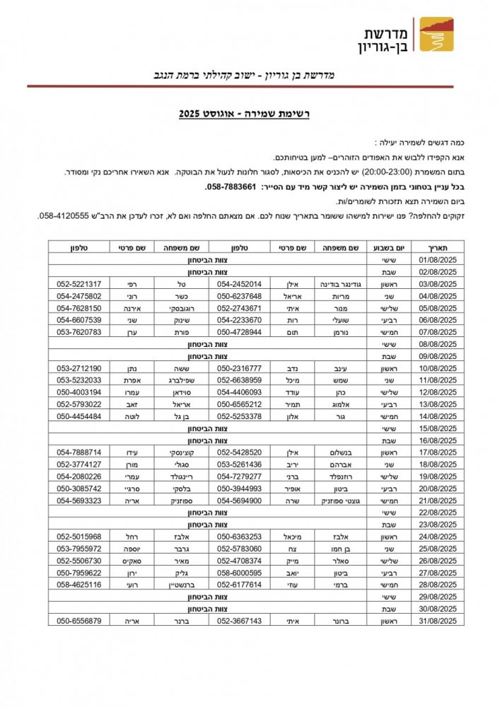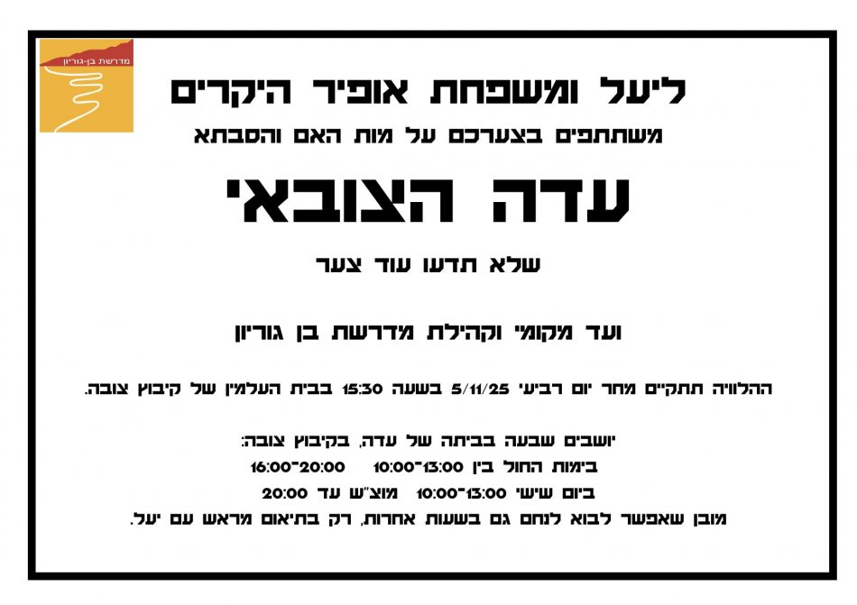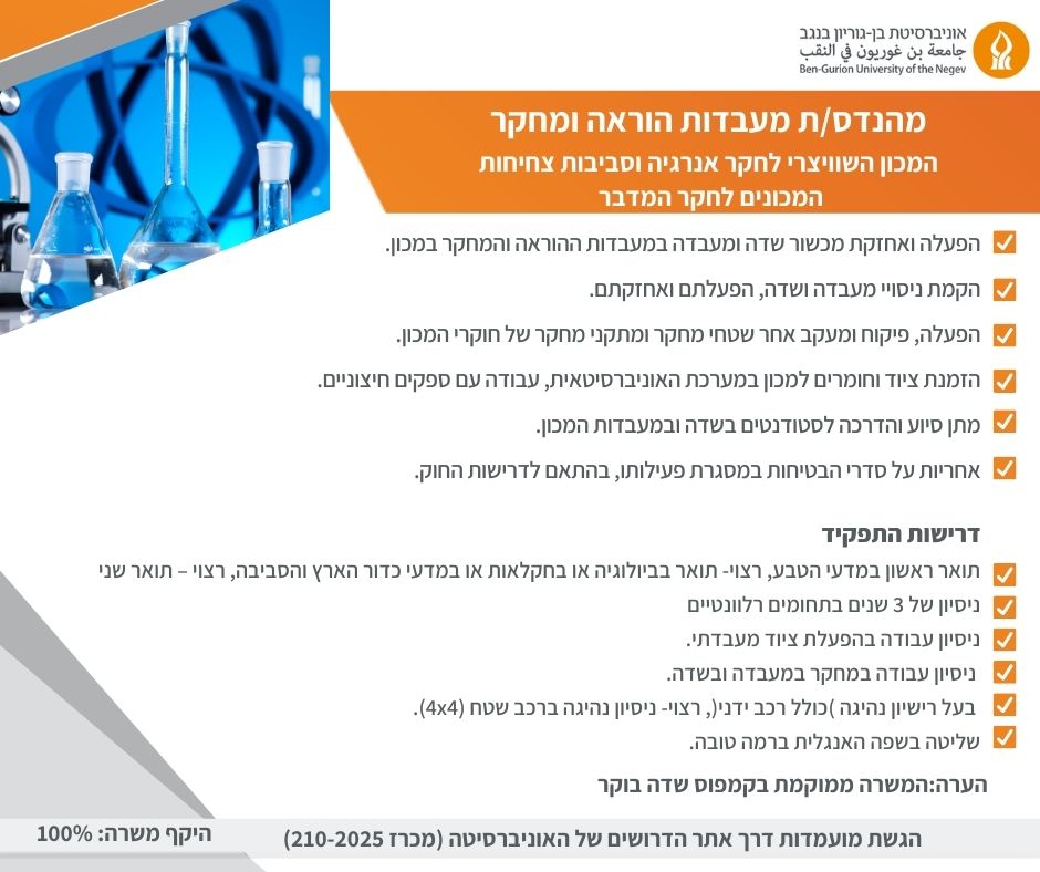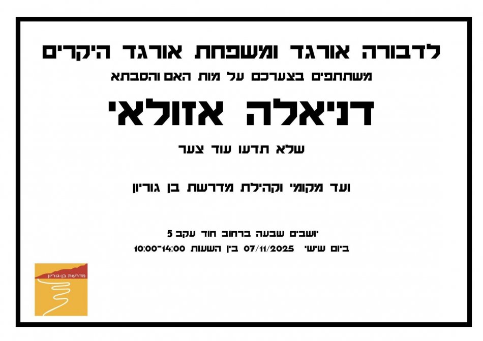 תאריך 14/12/25 יום א' בין השעות 08.30-16.00 תתקיים הפסקת חשמל יזומה במדרשת בן גוריון אשר תשפיע על מתקנכם: