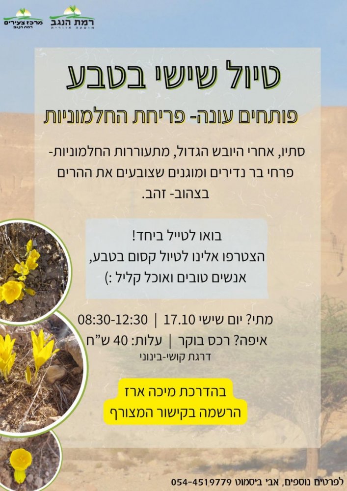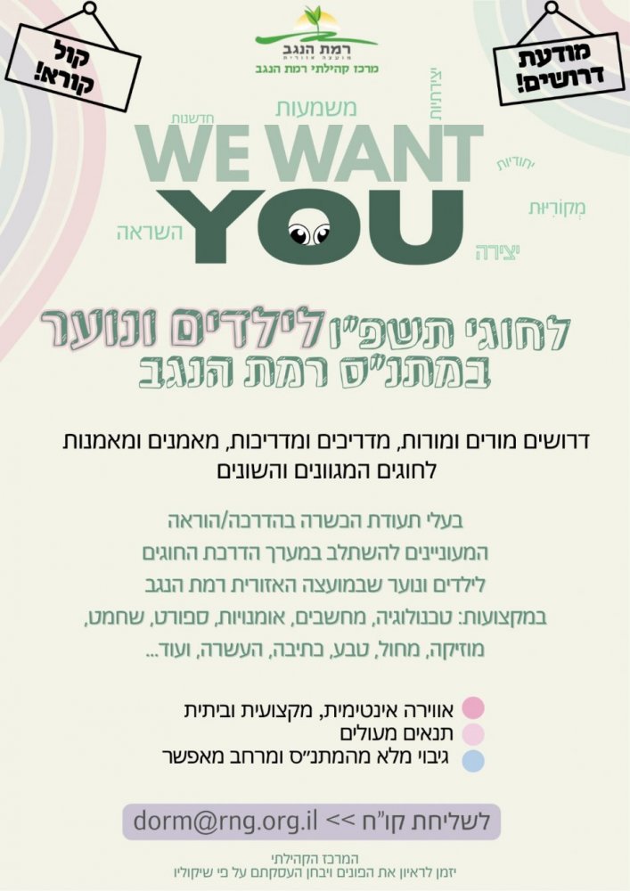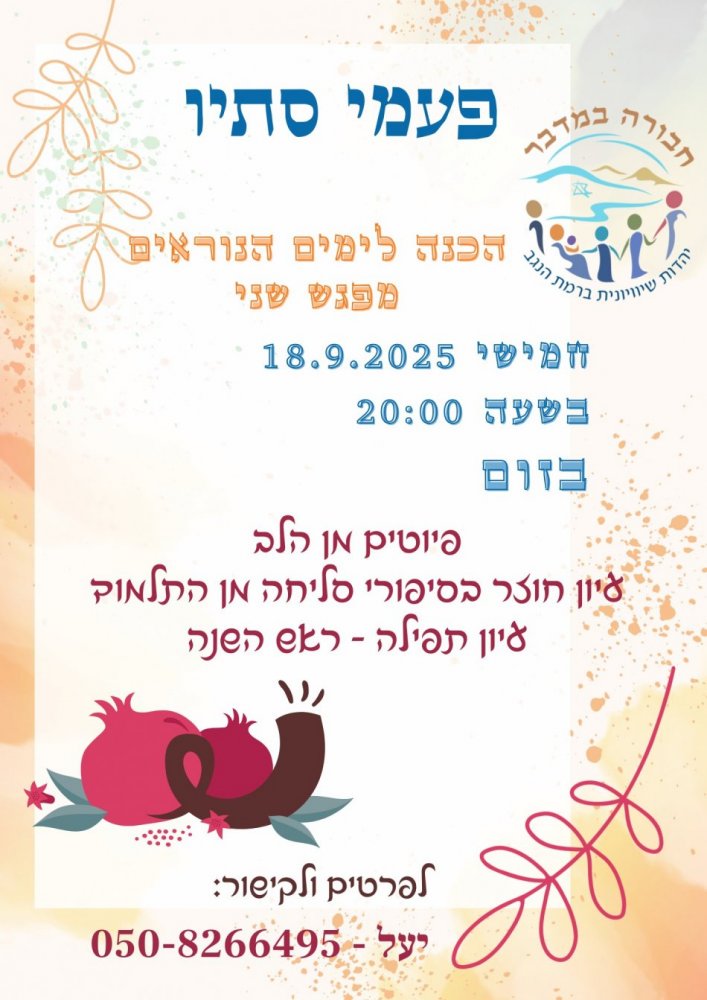 נשמח אם תכתבו לנו באיזה נושאים תרצו להתמקד על מנת שנוכל להעבירם מראש.
