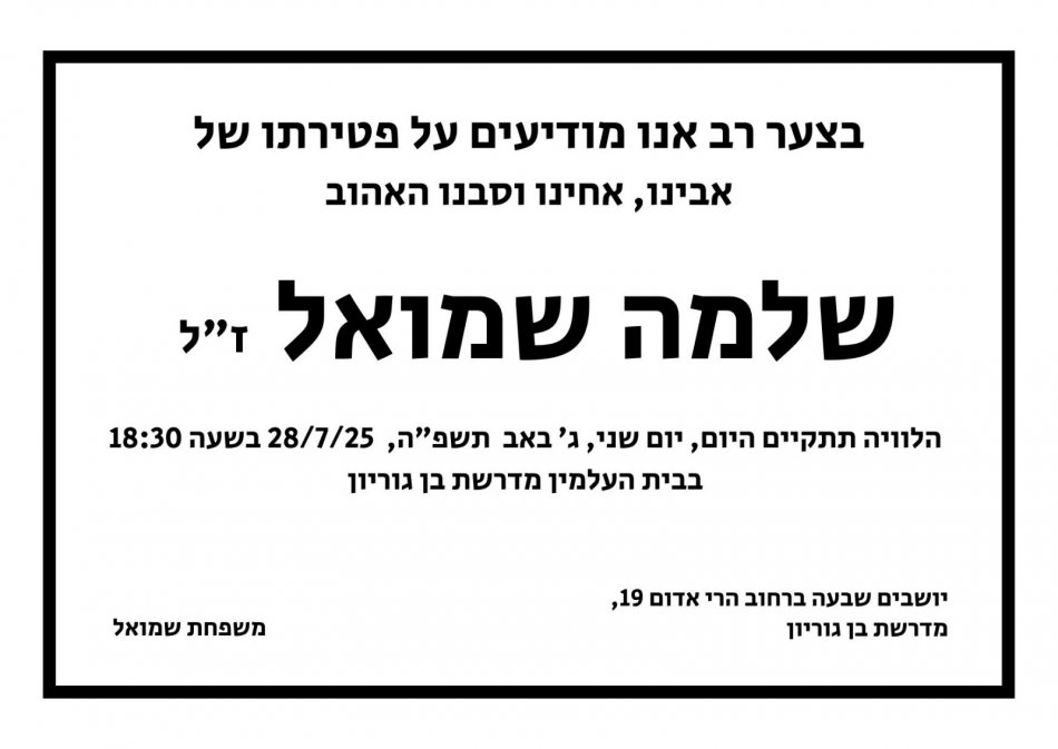 לקהילת המדרשה שלומות,