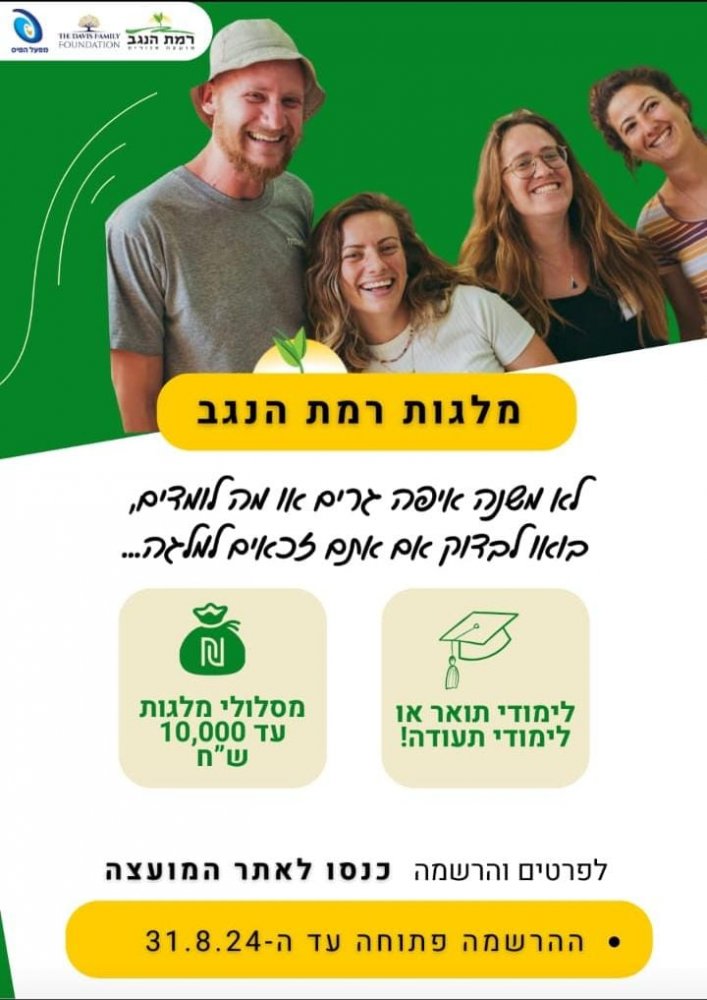 ההרשמה למלגות רמת הנגב פתוחה בין התאריכים 1.7-31.8.24,