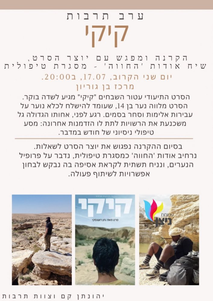 ערב תרבות: "קיקי" הקרנה ומפגש עם יוצר הסרט 17/7