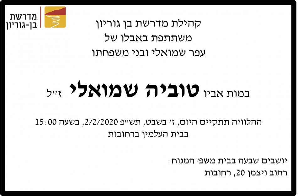 משתתפים באבלו של עפר שמואלי ובני משפחתו במות אביו טוביה שמואלי ז"ל