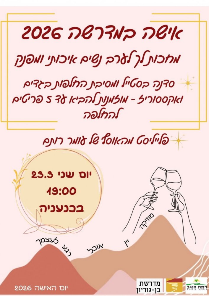 מ.א. רמת הנגב, ועד מקומי מדרשת בן גוריון וועדת קהילה מזמינים אתכן.ם