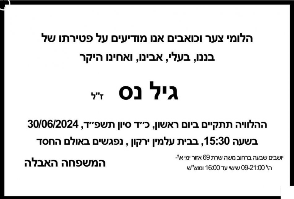 לוח מודעות אבל • 30/6/2024 • כניסות