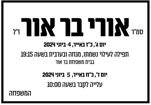 סמ"ר אורי בר אור ז"ל: תפילה לעילוי נשמתו ופרטים לעלייה לקבר