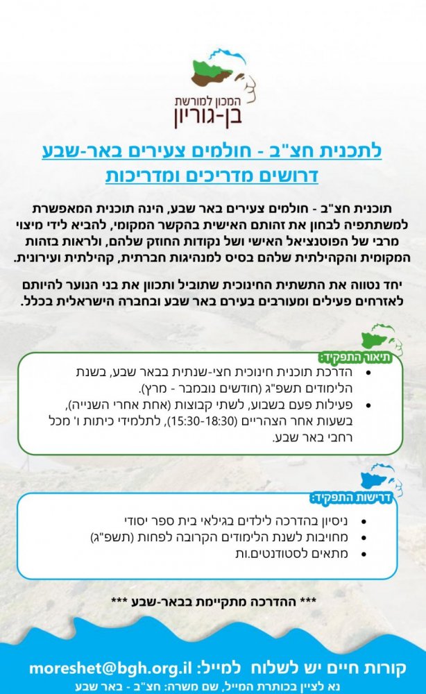 המכון למורשת בן-גוריון מגייס ראש מדור הדרכה במשרה מלאה, במדרשת בן-גוריון.