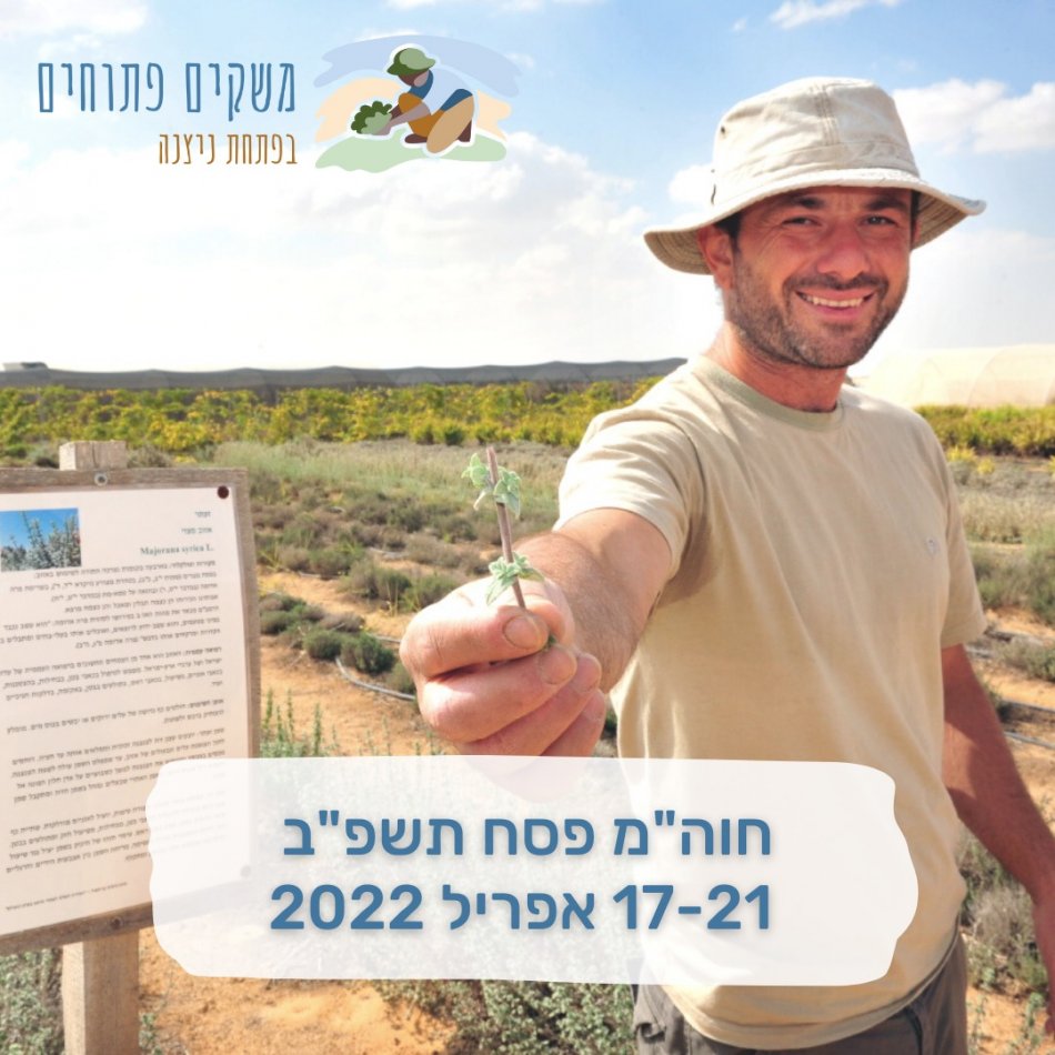 גם בפסח הזה תוכלו ליהנות ולהכיר מקרוב את החקלאות המדברית בפתחת ניצנה ולקטוף חוויות לכל המשפה בעלות מיוחדת של 15 ₪ למשתתף! 17-21.04.2022 הזדרזו! מספר הכרטיסים מוגבל. להזמנה: http://bit.ly/38kpS6x