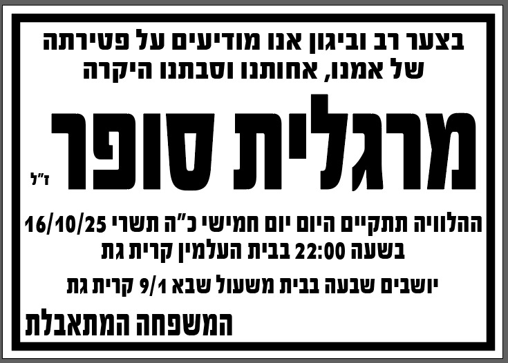 קהילת מדרשת בן גוריון משתתפת בצערו של עודד סופר על מות אמו מרגלית סופר