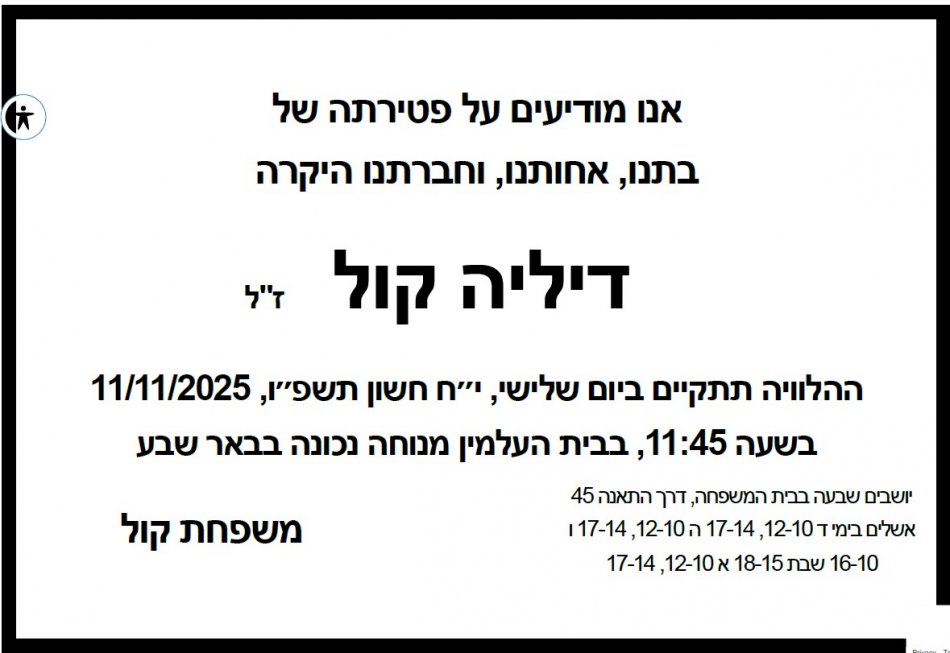 קהילת המדרשה משתתפת בצער של שירלי בר דוד מיכאלי ומשפחתה על מות אימה דליה