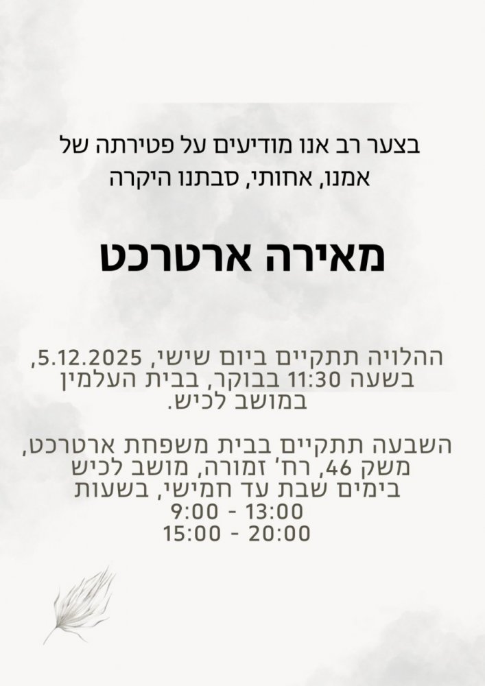 קהילת המדרשה משתתפת בצערו של רז ארבל ומשפחתו על מות האם מאירה