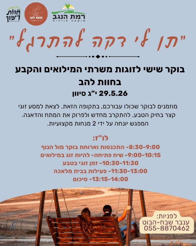 🌿 "תן לי דקה להתרגל"- ריטריט זוגי למשרת/ת ולבן/בת הזוג יחד.
