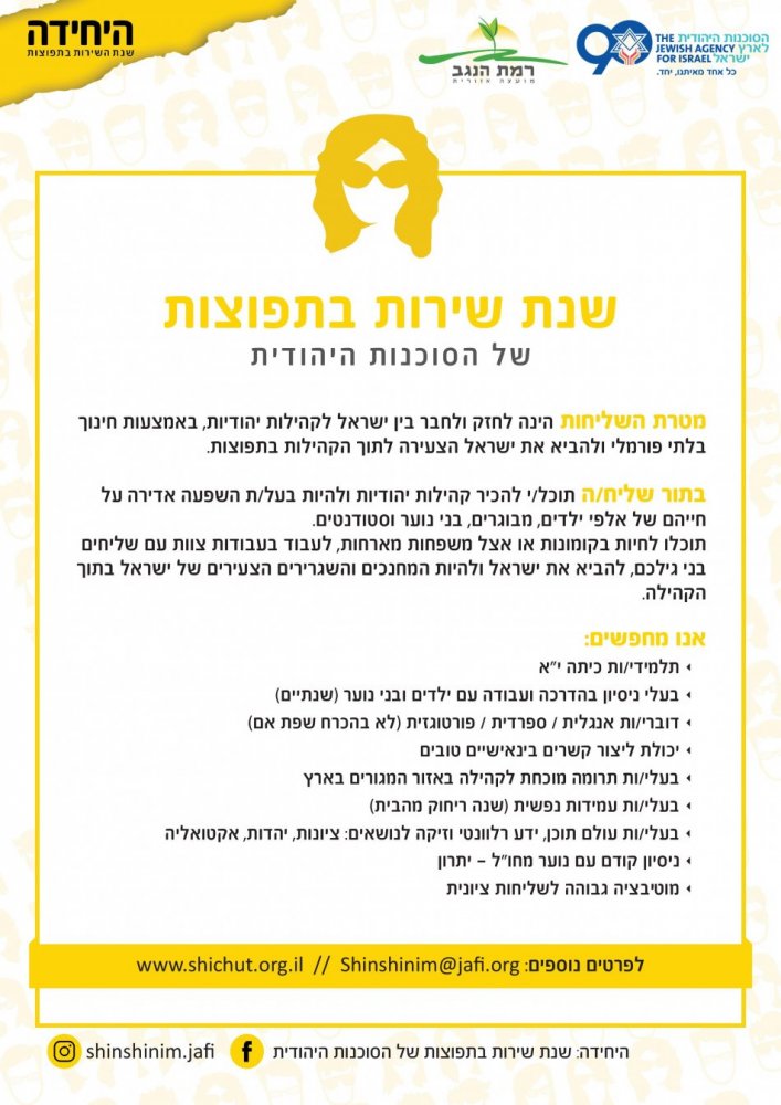 ההרשמה לשנת השירות בתפוצות לקיץ 2021 אוטוטו נסגרת!
