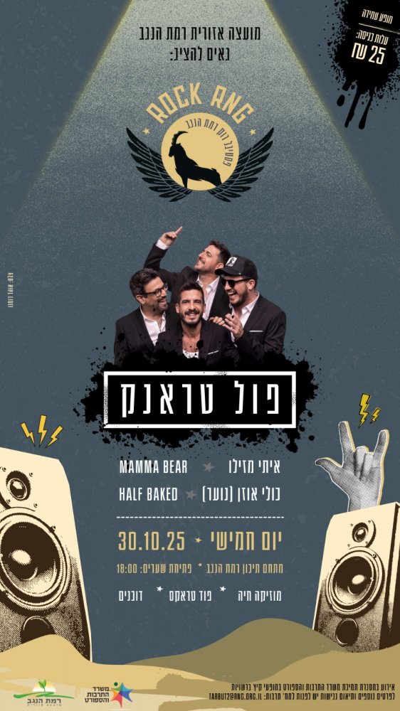 SOLD OUT !!!!פותחים את פסטיבל ROCK RNG - הלילה הכי חם בנגב עם להקת פול טראנק ולהקות מקומיות 30/10