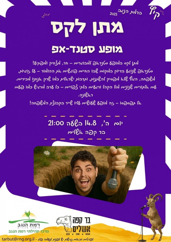 מרתון סטנדאפ בחצר התרבות – אשלים! 🤩 8/11
