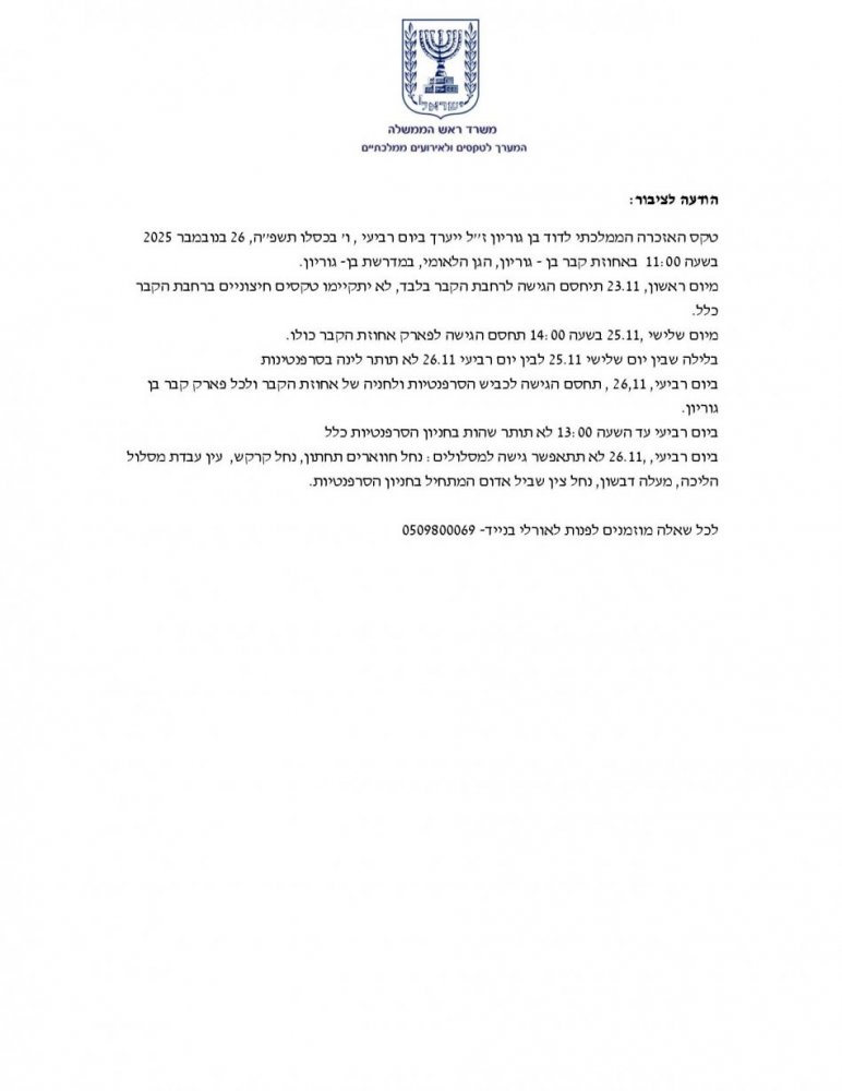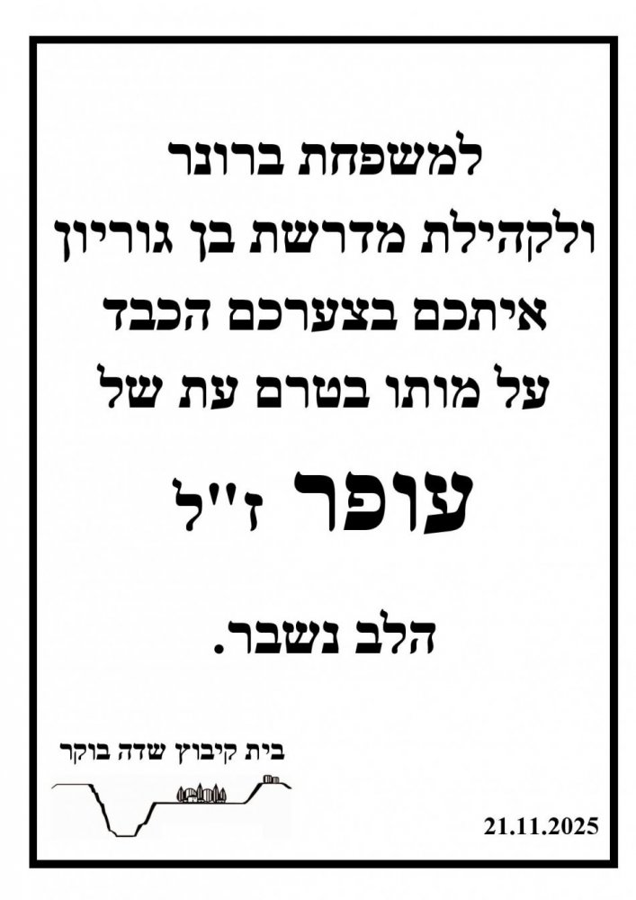 תאריך 14/12/25 יום א' בין השעות 08.30-16.00 תתקיים הפסקת חשמל יזומה במדרשת בן גוריון אשר תשפיע על מתקנכם:
