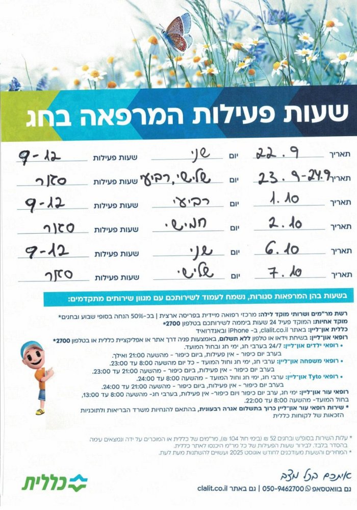 יום ראשון - 16:00-18:00.
