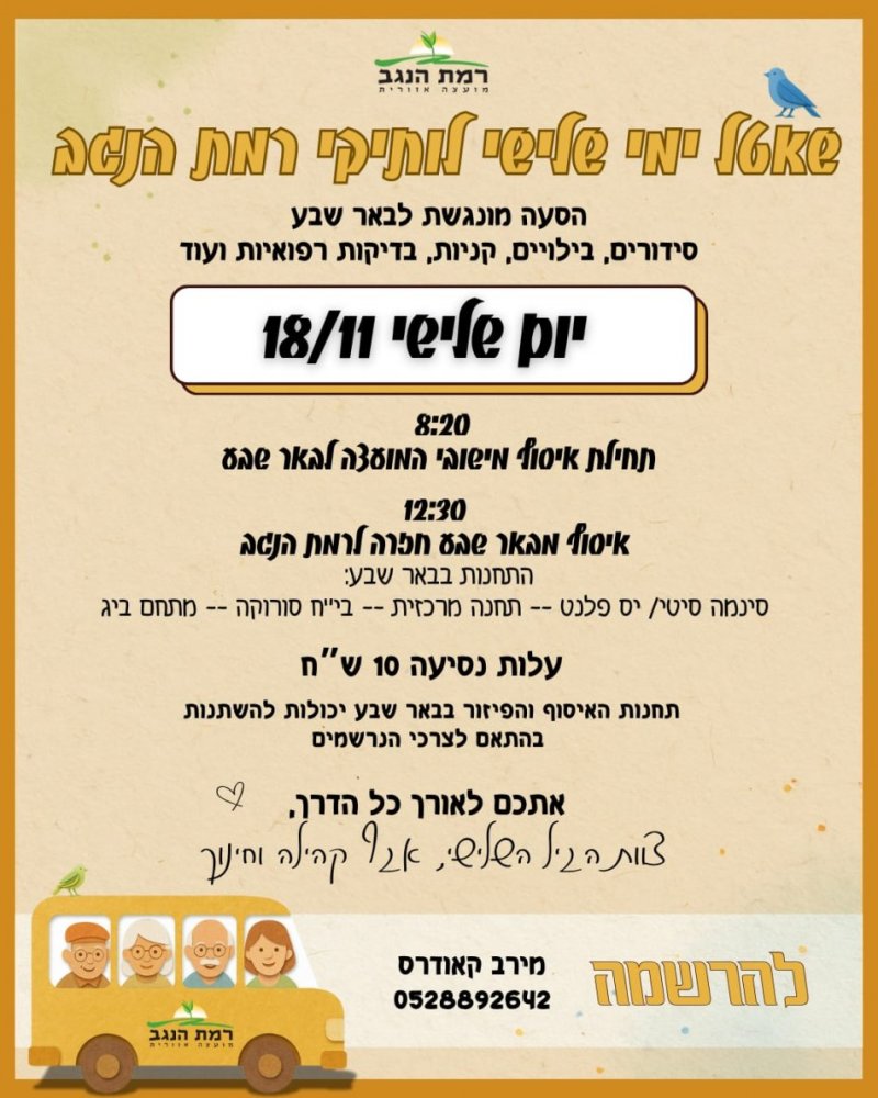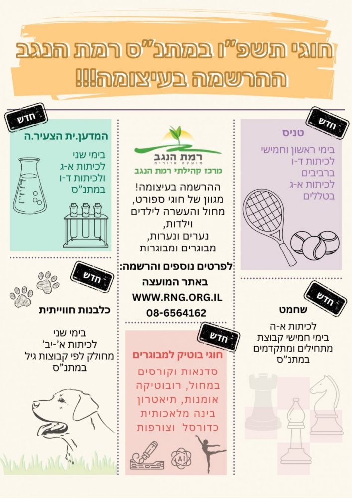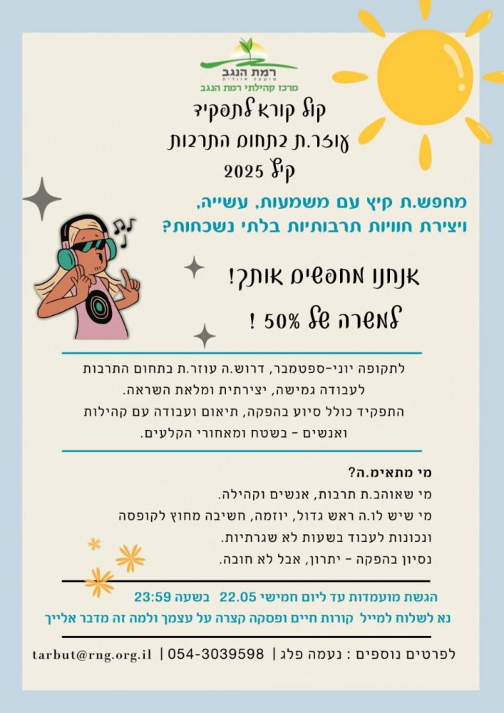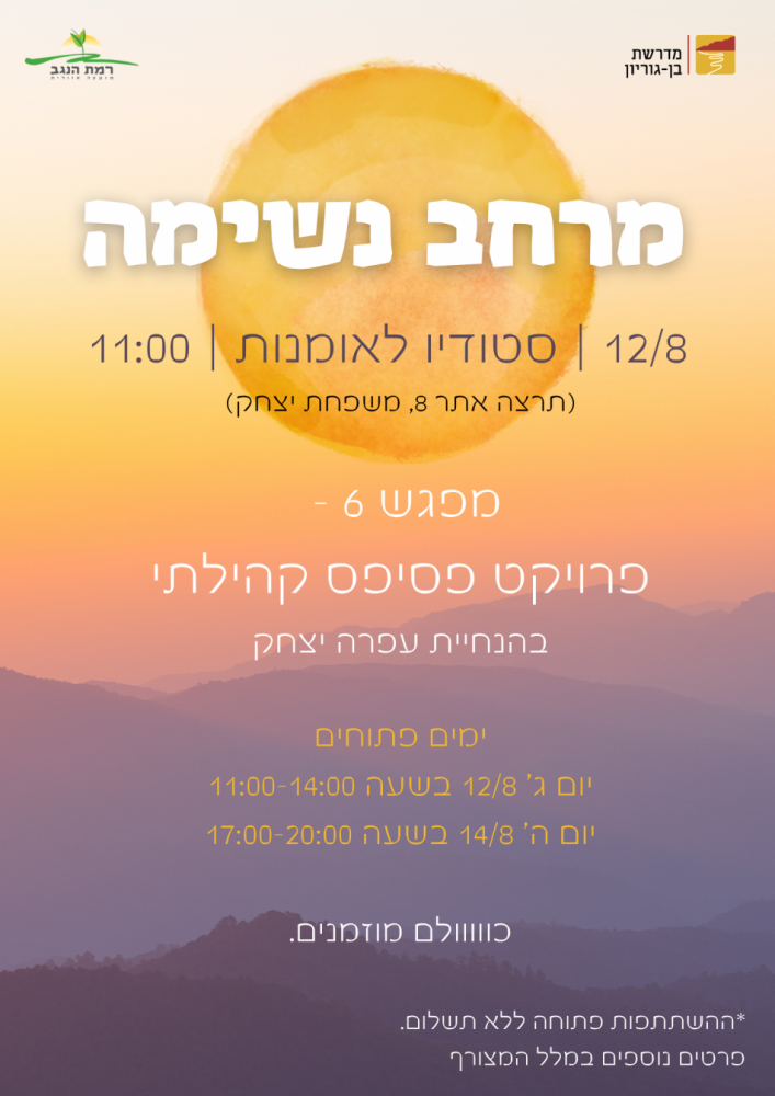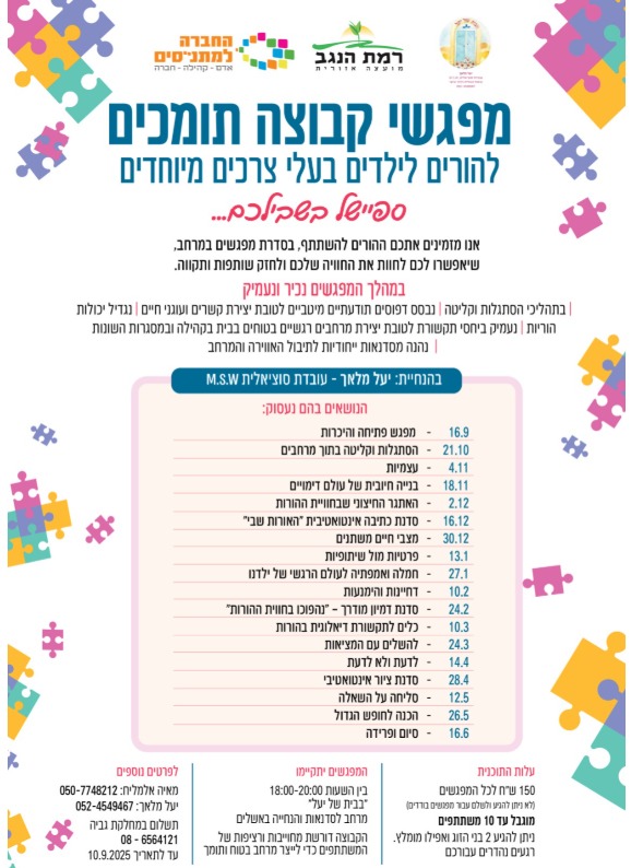 נשמח אם תכתבו לנו באיזה נושאים תרצו להתמקד על מנת שנוכל להעבירם מראש.