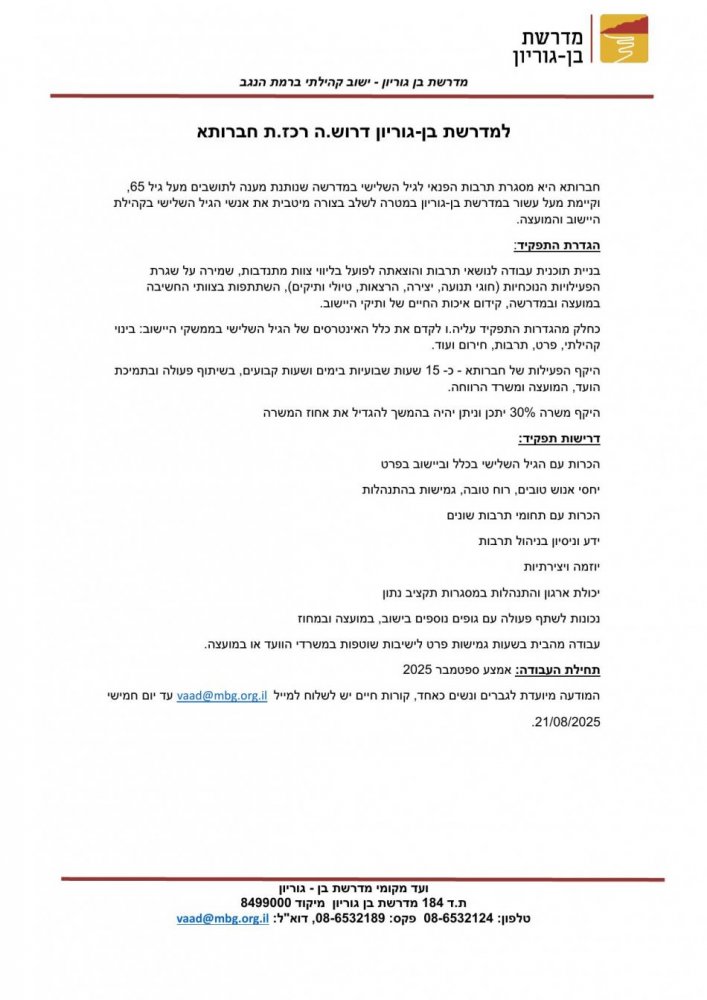 ניתן לפנות לדלית: vaad@mbg.org.il /יפעת: mazkir@mbg.org.il