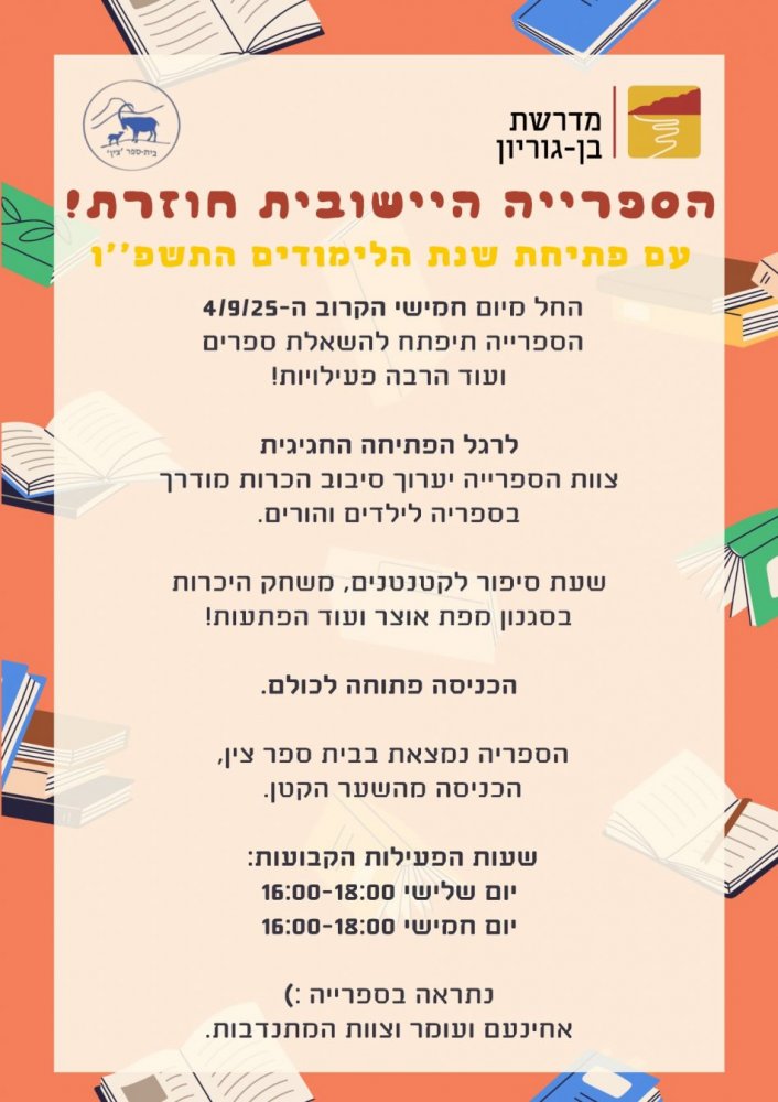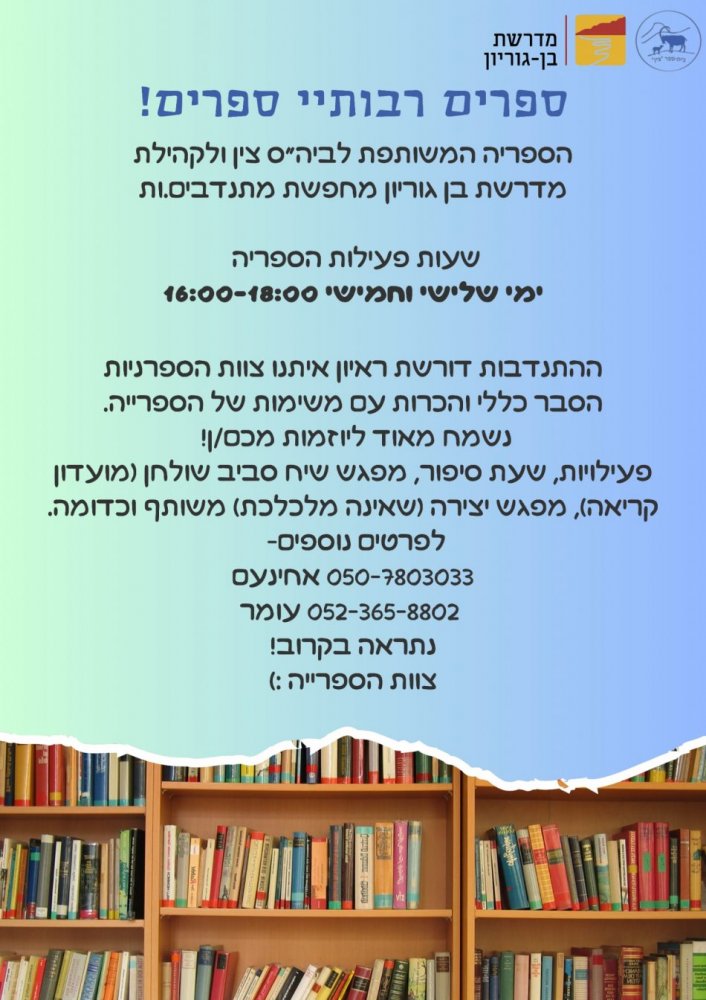 אם משהו מצלצל פה מוכר אתם צריכים לבדוק את פרוייקט שיתוף הספריות במדרשה, פרוייקט שיזם והוביל דרור נחימוב תושב המדרשה – www.MBGBooks.online