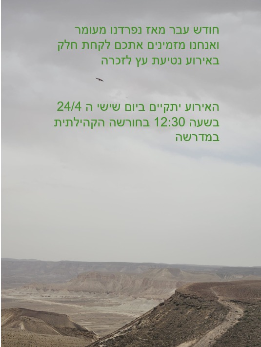 הנכם מוזמנים להביא פירות ופשטידות/עוגות פרוסים/מוכנים להגשה. ( ללא קרם וקצפת)