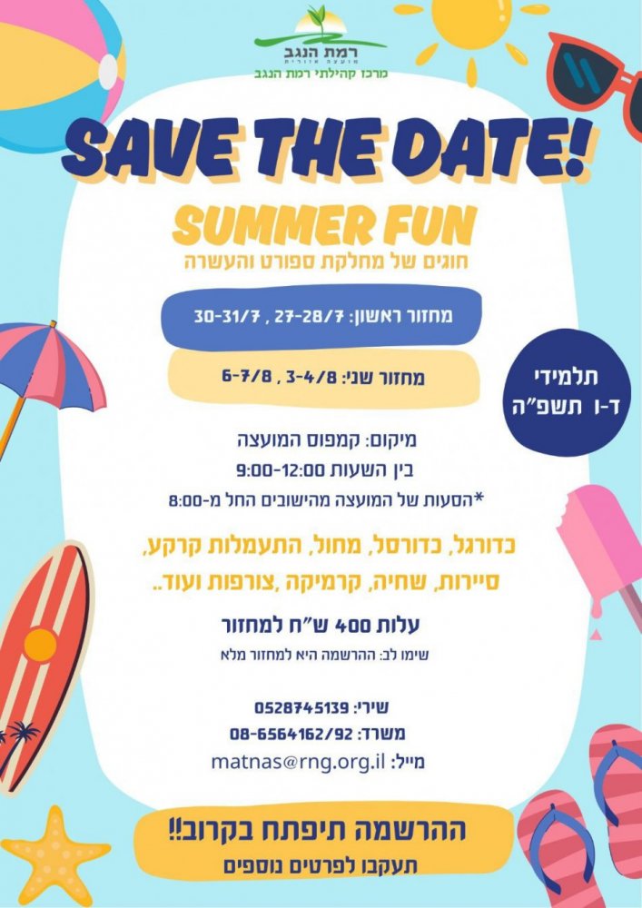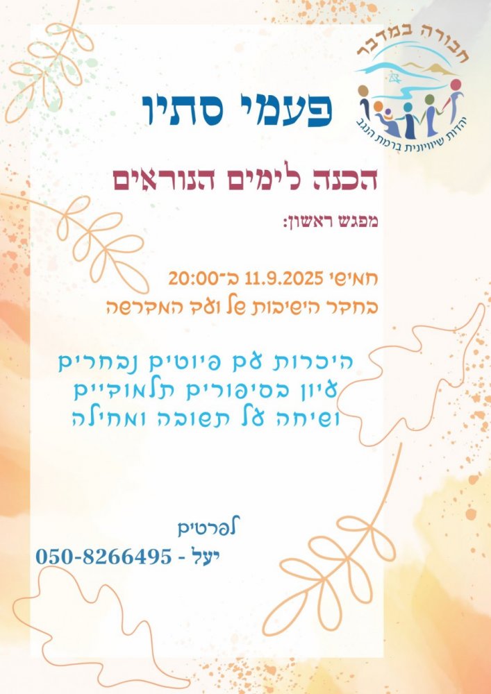 נשמח אם תכתבו לנו באיזה נושאים תרצו להתמקד על מנת שנוכל להעבירם מראש.