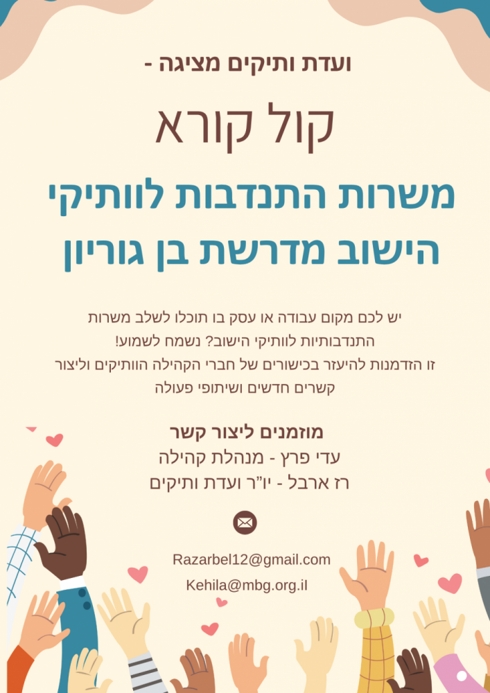 ניתן לפנות לדלית: vaad@mbg.org.il /יפעת: mazkir@mbg.org.il
