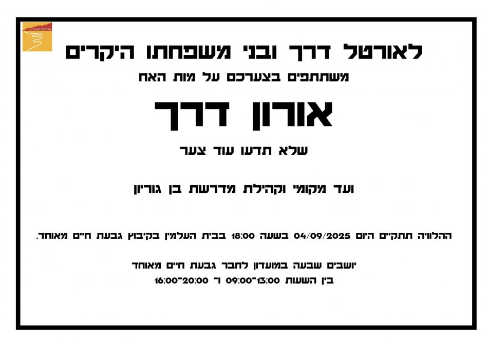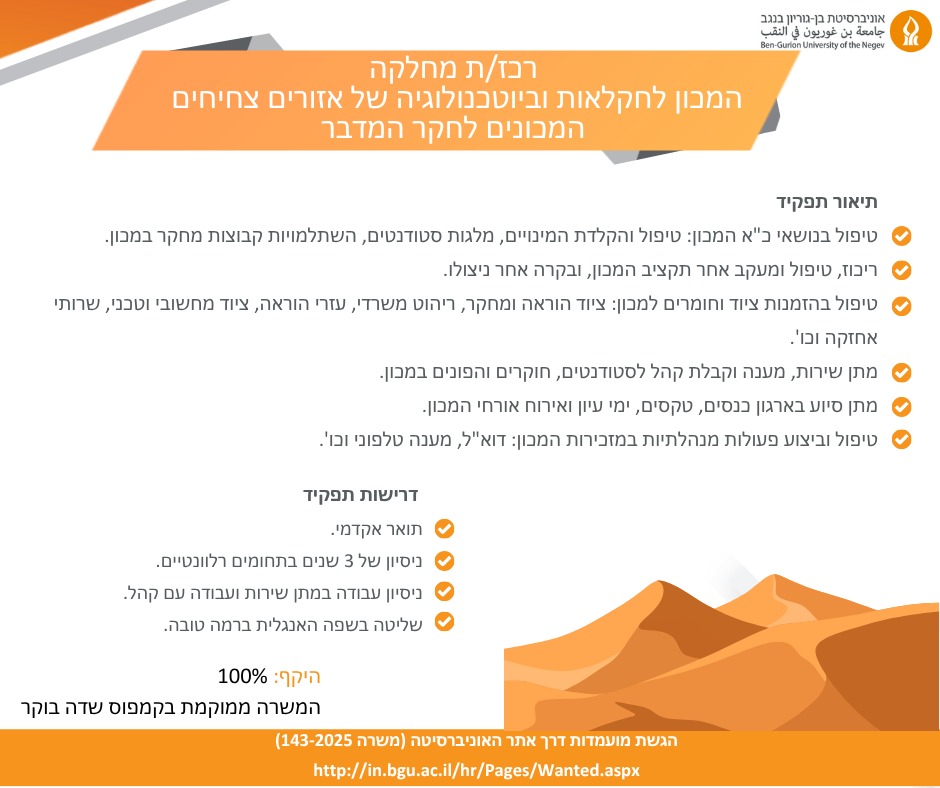 תאריך 14/12/25 יום א' בין השעות 08.30-16.00 תתקיים הפסקת חשמל יזומה במדרשת בן גוריון אשר תשפיע על מתקנכם: